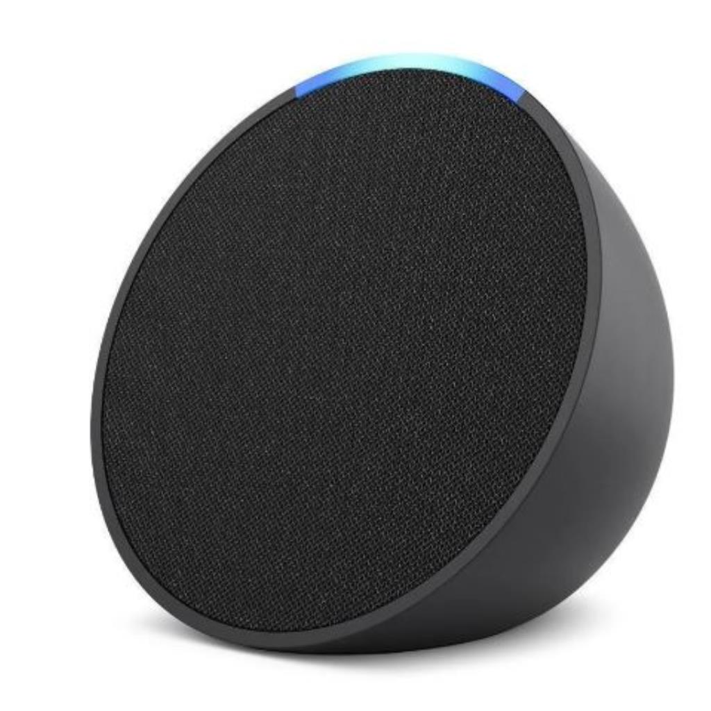 1x Amazon Echo Pop – Cor Preta 1x Fonte de Alimentação (15W) 1x Guia de Início Rápido