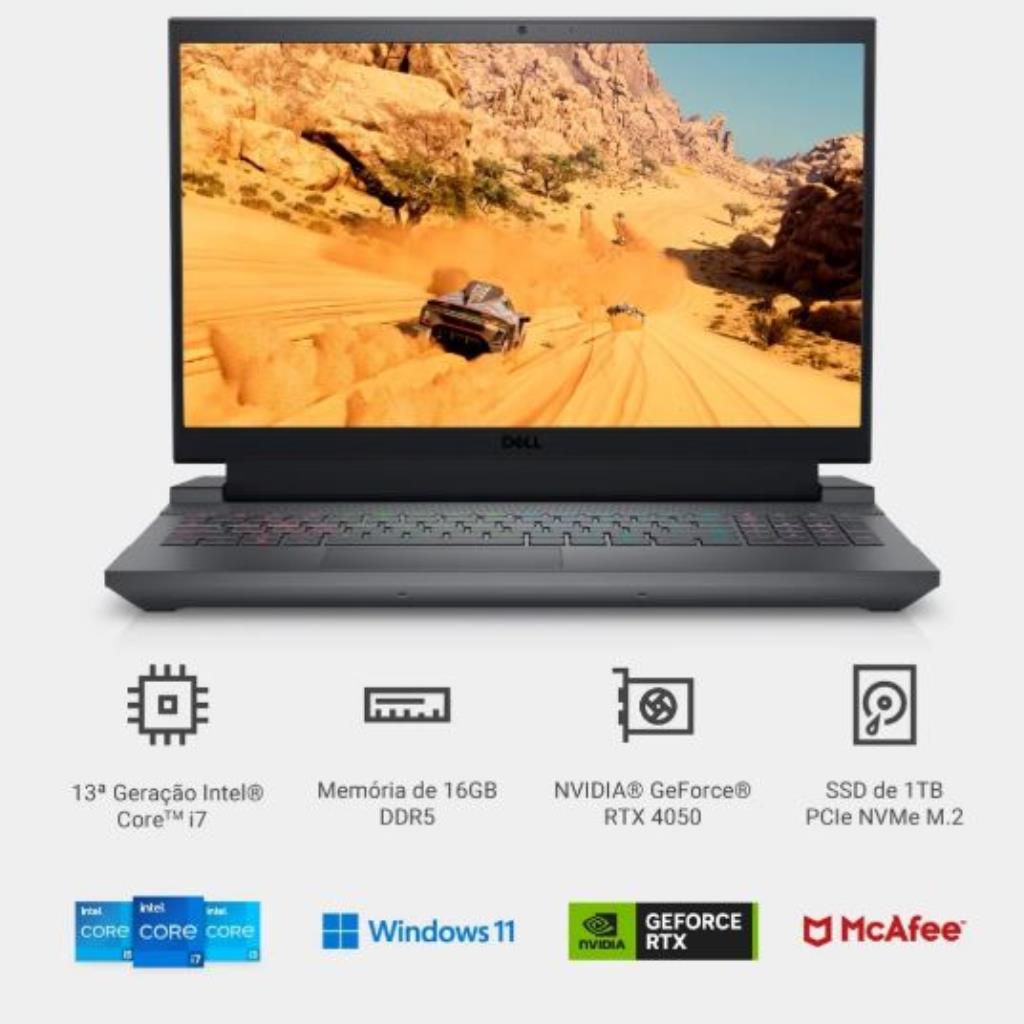 Intensifique a ação. Com o notebook Dell G15 Gaming você terá uma incrível experiência em um notebook com um desempenho excepcional. Contando com a 13ª geração de processadores Intel® Core, que fornecem um desempenho poderoso. As placas gráficas NVIDIA® GeForce RTX™ utilizam a arquitetura NVIDIA Ampere, núcleos Tensor e multiprocessadores de streaming para recursos gráficos realistas.